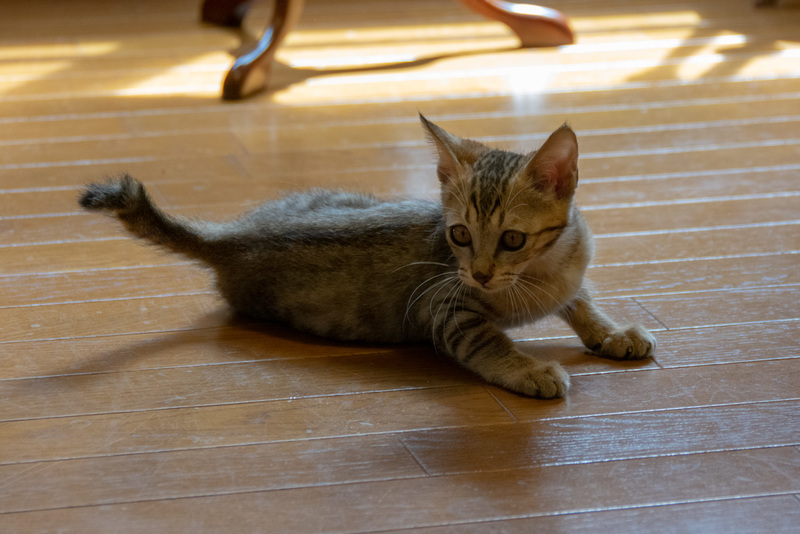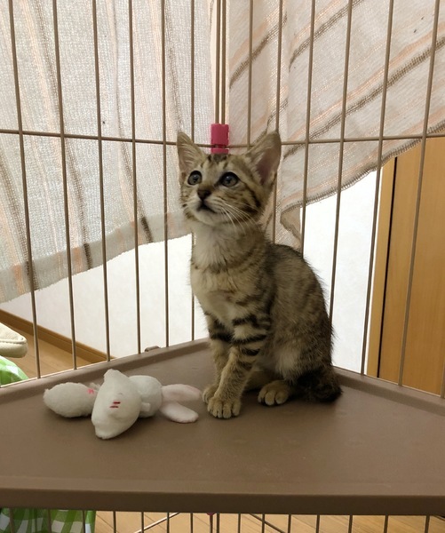 | 里親募集する理由 | 住宅の軒下に子猫が住み着き、8月下旬に保護しました。 この家の方が餌を与えていたため、保護当時から800gありました。 保護当時は目やにとくしゃみがひどかったのですが投薬により回復し、里親さまを募集させていただくこととなりました。 |