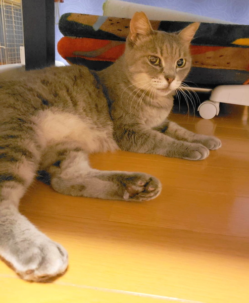 | 特徴(性格など) | 【仮名】 ミラ:未来、ミラクルからつけました。 団地の人たちにはみーちゃんと呼ばれていましたのでみーちゃんと呼んでいます。 【色柄】 あたたかみのある美しいグレーで、足のあたりは縞模様が入っています。 まるっこいフォームがふくふくしていて和み猫です。 【性格】 なにより穏やか。仕事の邪魔をすることがまったくありません。 自分の分を知っているようなけなげな子です。 人に慣れています。 たとえば、通院する時も、逃げるようなことはないので、簡単です。 爪切りもちょちょいのちょいです。すごいよいこです。 外で2年半暮らしていましたが、団地内の人たちにかわいがられてきたのか、人をこわがりません。 家に入れた時も、どこかに隠れるようなことはせず、どこがいいかなぁ~と選んだ場所にくつろいでいました。家の中に慣れているので、苦労しませんでした。 外猫の保護をしてきた私にも、家猫に向いている性格と思えました。 |