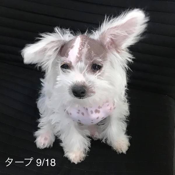 | 特徴(性格など) | マルチーズとペキニーズのmixです。 現在、頭部と、胸のあたり、腰のあたりの毛が薄いです。 2軒の獣医に診せましたが 疥癬やアカラスなどの皮膚病ではなく うつる病気ではないとの事。 この先、生えるかどうかわかりませんが サプリ的なものを開始してます。 性格は子犬らしくやんちゃで元気です。 追記:サプリはじめて10日ほどたちうっすら産毛みたいに生えてきてます。 |