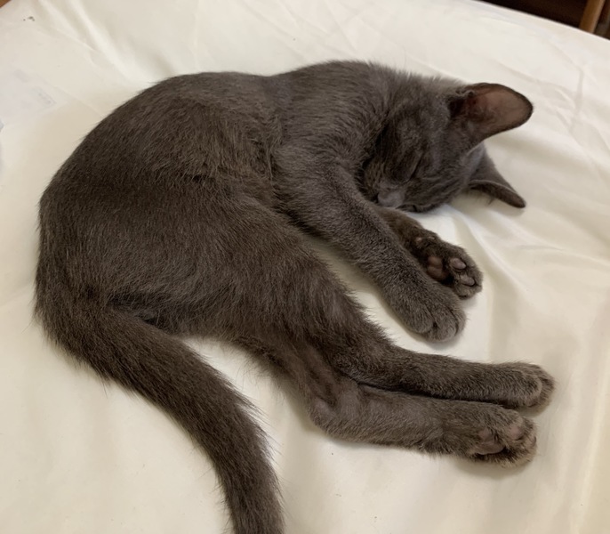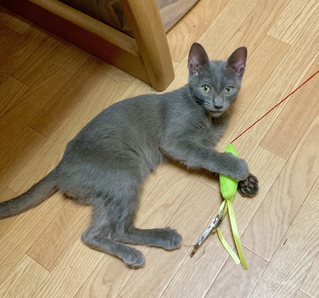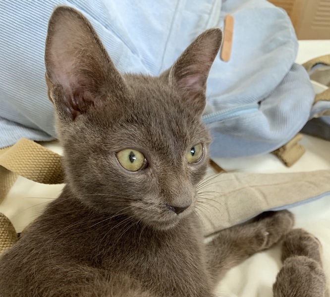 | 特徴(性格など) | ロシアンブルーのような見た目の、三か月ほど(1.5kg)の子猫です。 お腹や肉球を触っても怒らない、とても人懐っこく元気な子猫です。男の子と思われます。 トイレのしつけができており、砂の場所を教えれば問題なくできる子です。 シャンプーも一度行いましたが、シャワーを使わず、洗面器で落ち着いてやってあげると、暴れたり叫んだりすることはありませんでした。 感染症予防のワクチン接種済み。 ノミよけの薬(フロントライン)は9/16に一度目を受けています。(月に一度の薬です) |