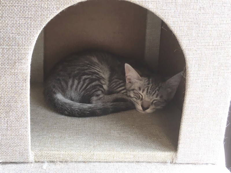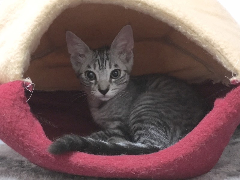 | 特徴(性格など) | 2019.6.23生まれ(推測) 毛色:サバトラ とてもきれいな模様と丸みを帯びたお顔が特徴のサバトラ君。 優しい性格で、同居猫には相手に合わせた対応が出来る紳士猫。 撫でるとゴロゴロ喉を鳴らします。 おもちゃで遊ぶのが大好きで元気に預かりボラ宅を走り回っているそう。 一緒に保護されたフラップ♀が大好きで、いつもピッタリ寄り添って寝ている姿がとても愛らしいです。 |