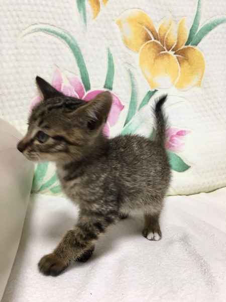 | 里親募集する理由 | 仕事場の倉庫を片付けてて見つかった子猫です。 現在アパート暮らしで連れて帰れない為、実家で保護していますが、妹家族がアレルギー持ちの為飼う事が出来ません。 |