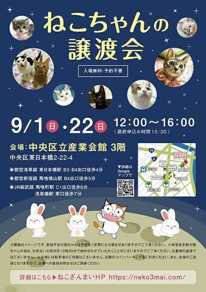 | その他(譲渡条件など) | ★仔猫ご希望の里親様★ 仔猫ちゃんたちは、まだ体がしっかりしていない赤ちゃんです。 下痢だけでも数時間対応ができなかっただけ死に至る事もあります。 その為、月齢に応じたお留守番時間を設けさせていただいております。 また、子猫ちゃん(6ヶ月未満)の里親様には子猫支援金のご協力をお願いいたしております。 ★猫ちゃんとのお見合いは譲渡会で!★ ねこざんまいの猫ちゃんは譲渡会でのお見合いのみとなります。 『この子はいつ譲渡会に参加するの?』『譲渡会場の場所はどこ?』など はねこざんまいホームページをご覧ください。 https://neko3mai.com/ ★楽しく猫ちゃんと触れ合って♪★ ねこざんまい譲渡会は、猫ちゃんも里親様も保護主も笑顔で過ごせる譲渡会を目指しています。 これから20年以上、楽しい時も、悲しい時もいつも傍にいてくれる大切な家族になる猫ちゃんです。 会場には沢山の猫ちゃんがいます。 1匹1匹、触れ合って猫ちゃんとお話ししてください。 『初めて猫ちゃんを家族に迎える方』 『先住猫ちゃんのお友達を迎える方』など トライアルの仕方や先住猫ちゃんと仲良くなるコツなど経験豊富な保護主やスタッフにお気軽にご相談ください! 猫を愛し、そして猫に愛されている猫好きスタッフと保護主がアドバイスさせていただきます。 ★里親希望のみなさまへ★ ペットではなく、家族一員としてたっぷり愛情を注いでくださるご家庭をお待ちしております。 恐れ入りますが、 ・学生の方 ・一人暮らし、同棲中の方 ・子猫、若猫希望の60歳以上のみのご家庭 ・脱走防止対策にご協力いただけない方 は原則お断りさせていただいております。 ただし、預かりボランティアさんとして新しい家族が決まるまでの間、猫ちゃんを預かっていただく道もございます。 参加猫ちゃんは、それぞれ保護主(実際に猫ちゃんを自宅に入れ、保護をしている方)が異なります。 詳しい条件なども異なる場合がございますので、会場内で直接保護主とお話ください。 〖共通条件〗 1.終生飼育 2.完全室内飼い 3.脱走防止対策へのご協力 4.避妊去勢手術 5.契約書類へのサイン 6.定期報告 7.医療費等の負担 当日の猫ちゃんを連れて帰ることはできません。後日、保護主が里親様のご自宅までお届け致します。 その為、移動の際の猫ちゃんの負担を月齢などから考慮し、お届け地区を限定させて頂くこともございますのでご了承ください。 |