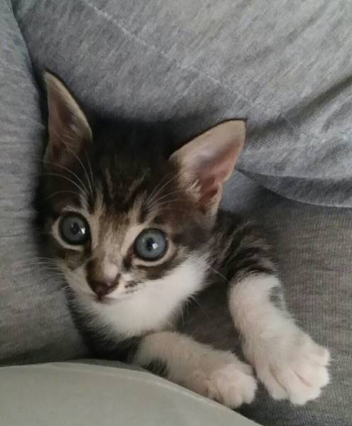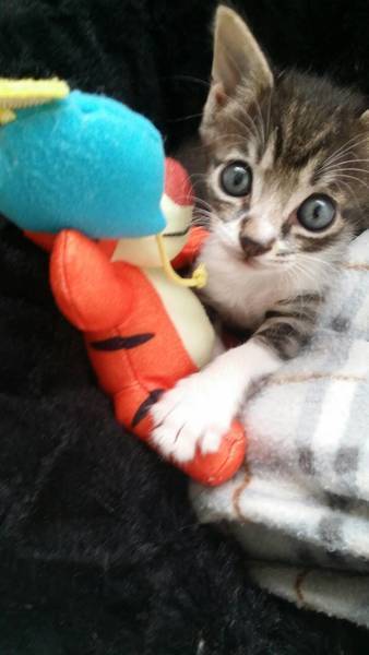| 特徴(性格など) | サバ白です。人懐こいです。最近、ちゃんと走ることが出来て活発に動き回っています。 兄弟がいないので独り遊びしかしていませんが、鳴くこともなく遊んでいます。 |