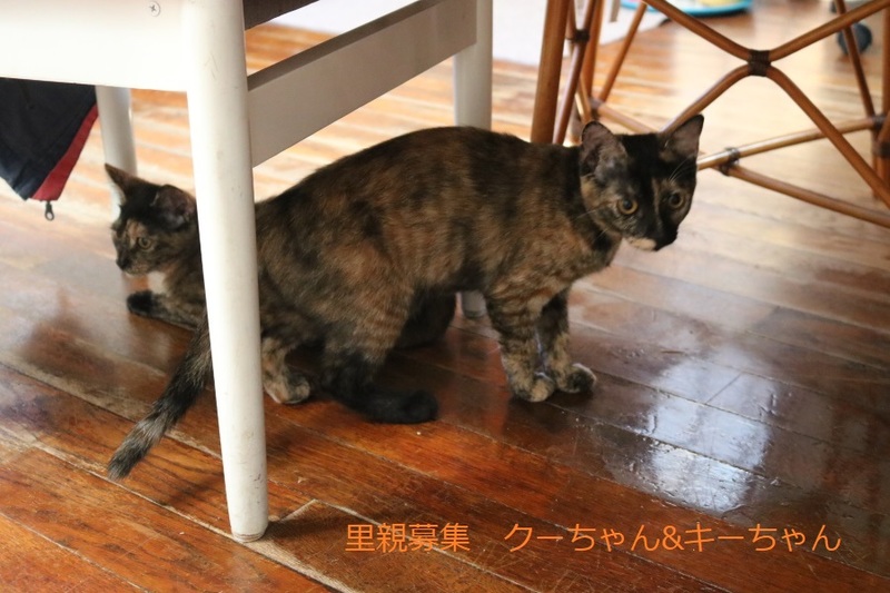 | 里親募集する理由 | 子猫2匹(キーちゃん&クーちゃん、さび姉妹)で捨てられていました。 生涯大切にしてくださる里親様を募集します。 完全室内飼い&脱走防止策の徹底のできる方、 生後6ヶ月までに、必ず不妊手術が出来る方、 終生可愛がって健康管理をきちんとしてくださる方、 ペット可住宅にお住まいの方(賃貸、集合住宅の場合は必ず契約書でペット可であることをご確認下さい)、 誓約書へのご記入、身分証明書のご提示(当方も提示)、 写真付きの近況報告が了承いただける方(いただいたご報告はブログにてご紹介いたします。https://okayamaaigokai.blog.fc2.com/blog-category-6.html ) 岡山県内の方、お留守番の少ないご家庭、を希望します。 未成年(学生など経済的自立していない方も含みます)、単身者、同棲カップル、高齢者のみの世帯、は基本的にお断りしています。 *お見合い後、トライアルまでに、脱走対策、トイレ、キャリーバッグをご準備ください。 |