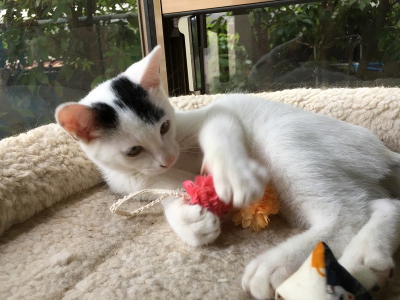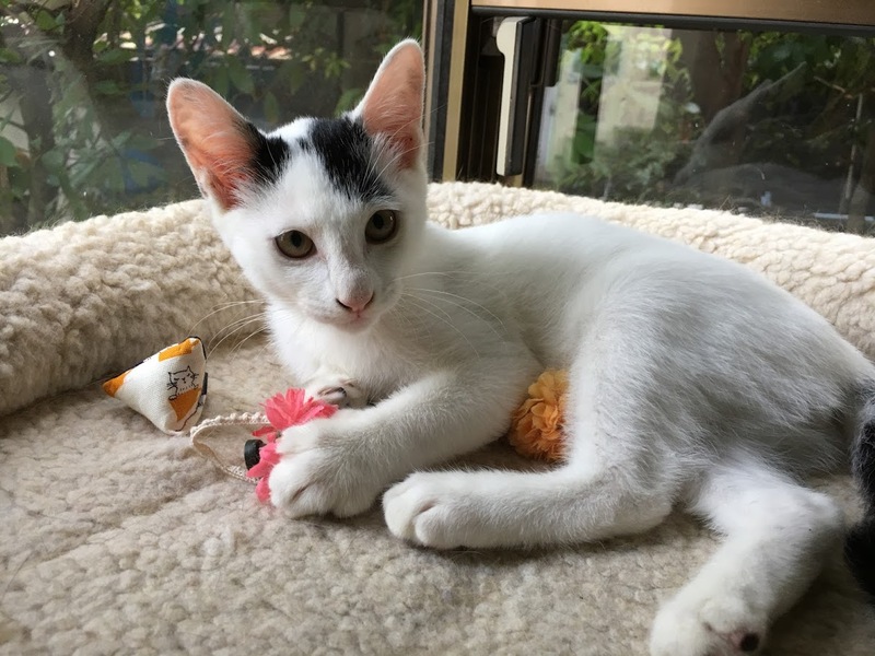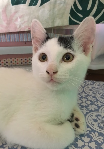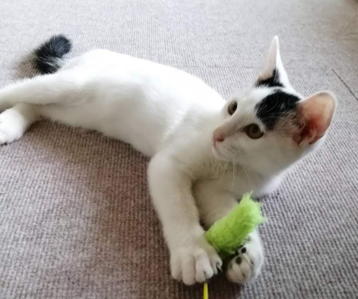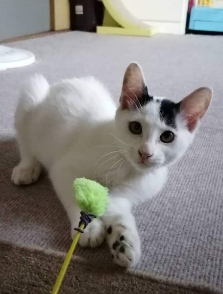 | 特徴(性格など) | 白猫ですが、頭にぶちがあり、尻尾は真っ黒です。 最初は怖がっていましたが、慣れてきました。 オモチャでよく遊びます。 現在健康面も良好です。 ノミダニ駆除、ワクチン一回済み。 兄妹で遊ぶ動画あります。 ザビエル君とシャア君動画 https://youtu.be/lLMInoztzqY |