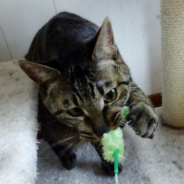 | 特徴(性格など) | 遊ぶの大好き♪なマーガレットくん♡ 部屋に入ると遊ぼう!と始めは挨拶。少し遊ぶと、離れて一人で遊んだり他の兄弟を誘いにいく、元気な男の子です♪ 甘えん坊さんだけど、今はとにかく遊びたい~♪な、おめめまんまる♡元気で可愛い性格の男の子です。 現在、ロイヤルカナン成長後期・子猫用を置き餌として、パウチなどを一日2回、与えています。 |
