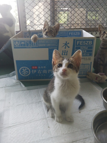 | 特徴(性格など) | お目めがぱっちり、キラキラの目なので、仮の名前は『きららくん』と 呼んでいます。 とても美形な男の子♪ 性格は 控えめな心優しい子猫ちゃんです。 女の子の姉妹に押されぎみの 一面もありますが、 元気よく遊んでいます。 |