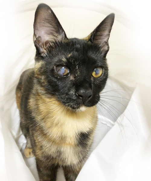 | 里親募集する理由 | キイちゃんとの出会いは、某所で外ネコにフードを与えていたところ、細くて華奢なサビ柄の子ネコが現れ、健常ネコ親子に交じって食べだしました。 よく見ると先に保護したショコラと同様両瞼が大きく腫れて目がふさがった状態でした。その日に保護して病院に直行しました。 病院ではレボリューション、インターフェロン投与の一連の処置を行いました。目は両方とも角膜が癒着しており、応急的にはがしてもらいました。さらに2回インターフェロン投与、点眼を行った結果白濁は残ったものの両目とも何とか見える状態に戻すことができました。 保護する時にこんな状態の子を保護して大丈夫だろうかと一瞬ためらいがありましたが、あのような状況下でも決して生きることをあきらめない生命の強さに感動を覚え、今では本当に保護して良かったと思っております。 |