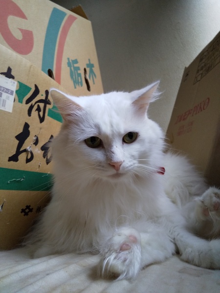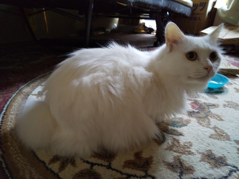 | 特徴(性格など) | クリルアイルボブテイルの血が入ってると思われる、真白長毛のボブテイルの雪花(せつか)くんです。2歳過ぎです。 | ||
