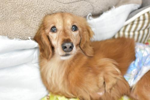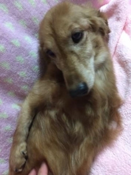 | 特徴(性格など) | 仮名をといろと言います。レッドのダックスです。 左前足がありません。 正式には、「ありません」ではなく、奇形で、小さな前足が、 脇腹あたりにチョコンとついてます。 爪もちゃんとあります。 右前足も、 手首から先は少し奇形があると思います。 歩く時は、後ろ足と右前足とで、 ピョコタンピョコタン歩く時もあるし、 右前足を使わずに、上半身で床をズリズリと ラッセルしながら進んでくることもあります。 前足に障害がありはするものの、 といろはとっても元気です。 後ろ足だけでピョコンと立ち上がることもできます。 室内での生活はほぼフツーにできます。 といろの記事 ↓ ↓ tomonet3.blog68.fc2.com/blog-entry-1081.html |