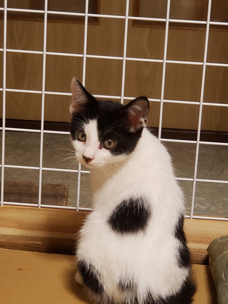| 特徴(性格など) | ボクちんは、たまくんだよー おにょね、ボクは、毎日いそがちーんだぞ 同じキョウダイのしんくんと、おいかっけしたり、プロレスしたり、疲れたらカリカリ食べて、お昼寝したり。 とにかく、ボクは、毎日、いそがしんだ。 ボク達キョウダイは、とっても仲良しだから、一緒に迎えてくれる家族が欲しいにゃ。 ボク達、キョウダイ揃って、甘えん坊しゃんだから、うんと甘えさせてくれる家族を待ってるにゃ ―――――――――――――――――――――――――――――― 人懐っこくて、とてもかわいい黒白猫の子猫ちゃんのご紹介です。 遊びも大好きで、まだまだ遊びたい盛りです。 そして、甘えん坊なのも堪らなくかわいいです。 同じく一緒に保護したキョウダイのしんくんとは、大の仲良しなので、毎日、しんくんと一緒に仲良く遊んでいます。 キョウダイの中がとても良いので、もし一緒に迎えてくださる方がいれば、キョウダイ一緒の方が利点は多いです。 ある程度ほっといてもキョウダイで遊んでお留守番をしていられますので、半日ぐらいのお仕事をお持ちのご家庭でも問題なく迎えていただけます。 カリカリを置いておけば、勝手に食べてくれます。 猫飼い初心者のご家庭やお子さんのいるご家庭に、是非ともおススメしたい子達です。 ケージは、必要ありません。 初めは、専用部屋を作ってあげれば、そこからのスタートで大丈夫です。 かわいい子達ですから、ぜひ、よろしくお願いします。 |