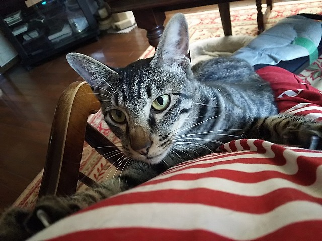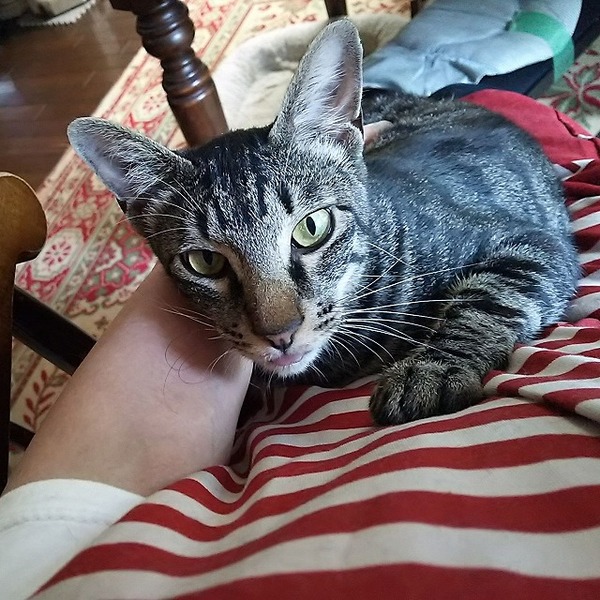 | 特徴(性格など) | ●ノミ・ダニ駆除済み ●検便・駆虫済み ●ワクチン接種済み ●避妊・去勢手術済み ●ウイルス検査異常なし キジトラの隼人くんです。 決して可愛い顔ではないのですけれど性格は花丸君です。 甘えん坊で犬の様にくっついて来ます。 雑巾掛けをすれば遊んで貰っていると思ってゴロンゴロン寝そべります。 座れば直ぐに膝に乗って抱きつきます。 気が弱く他の猫が居ると甘えたくても近づけなくて恐る恐る側に寄って来て他の猫が来ると一目散に逃げ出します。 くっつき虫なので一寸五月蠅いかも知れませんけれど楽しい猫ですよ。 代理で投稿しております。 お問合せは下記に記載の募集主アドレスへお願いいたします。 (ご希望の子の名前と簡単な自己紹介を書いて下さい) |