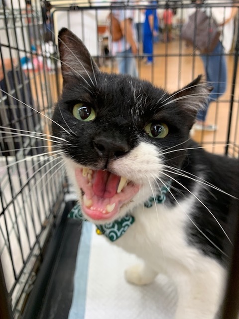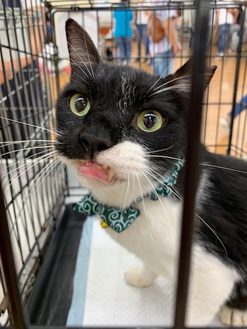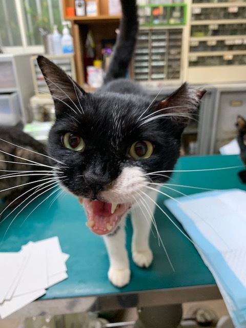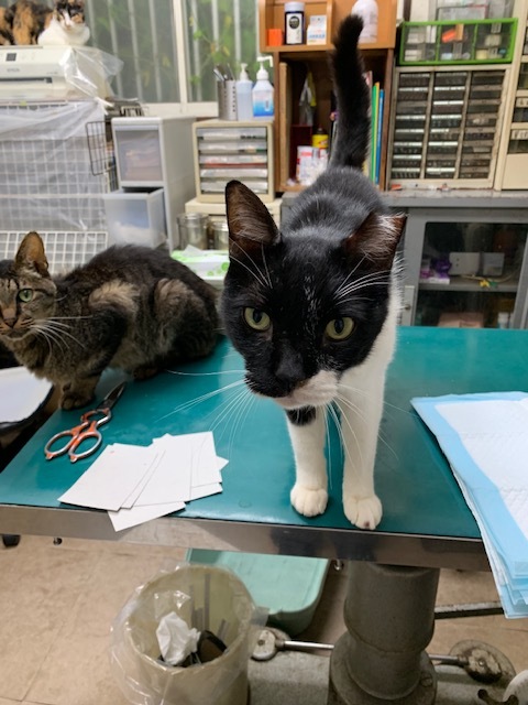 | 特徴(性格など) | 特徴のある顔をしています。 初めて会った方でもスリスリと~ 猫も大丈夫な、柄は白黒の大きな子です。 なつこい子なので、元家猫さんだったのかもわかりません。 |