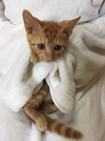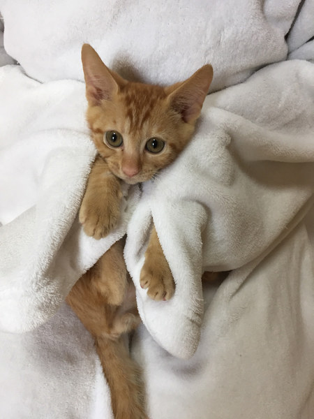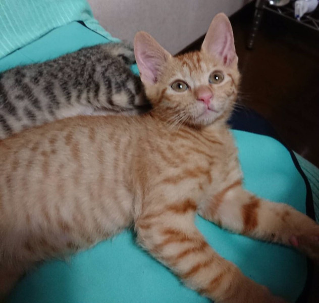 | 特徴(性格など) | ボクちんは、チャロくんだおー 全身茶トラでーす 甘えん坊で、ちょぴりヘタレだけど、人も猫も大好きにゃんだよ! 毎日ね、キョウダイ達と元気いっぱい遊んでるよ! そして、遊び疲れたら、ソファーの上で寝るのがボクの日課にゃんだ ボク、キョウダイと一緒に里子に行けたらいいにゃって思ってる。 よろちくおねがいしますにゃ ―――――――――――――――――――――――――――――― かわいい茶トラの子猫くんのご紹介です。 人慣れも家庭猫慣れもしております。 この子達は4キョウダイで保護しました。 小さなうちに保護したので、人には慣れております。 同じく譲渡会に一緒に出場するのぞみちゃん、しょう太くん、かなえちゃんがキョウダイです。 遊びがとにかく大好きで、おもちゃに直ぐに反応してくれる単純な所もありますが、ちょっぴりビビりくん。 家庭生活にもすっかり慣れておりますので、ケージなどは必要ありません。 飼いやすい子達ですので、猫飼い初心者の方にもおススメできます。 小さなお子さんがいるご家庭でも大丈夫です。 半日ぐらいのお留守ならば可能ですので、パートタイムをお持ちのご家庭など問題なく迎えていただけます。 可能であれば、キョウダイ仲良しなので、2匹で迎えてくださるとありがたいです! 子猫の場合は、2匹一緒だと遊びあってお留守したりできるので、利点も多いです。 かわいい子達なので、ぜひ、よろしくお願いします。 |