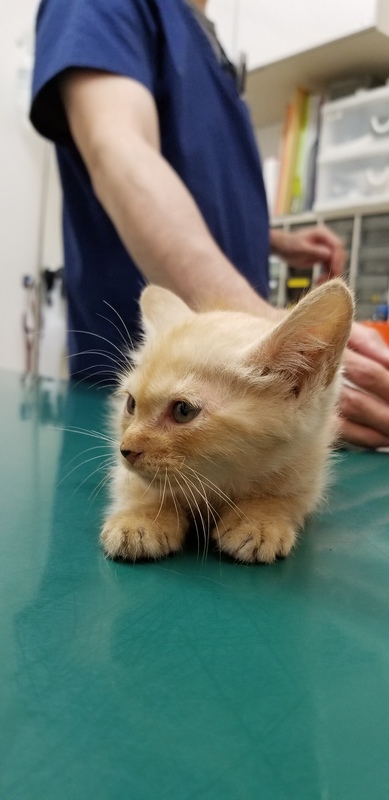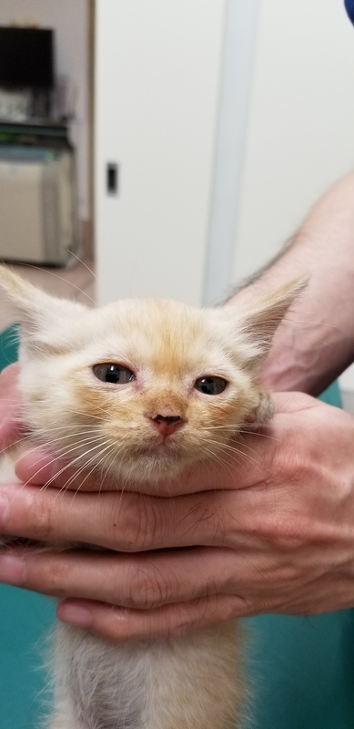 子猫保護しました。ミカン色の可愛いネコです 。手のひらサイズ。当方犬を飼っているためどうしてもネコチャンを飼えません。宜しくお願いします。