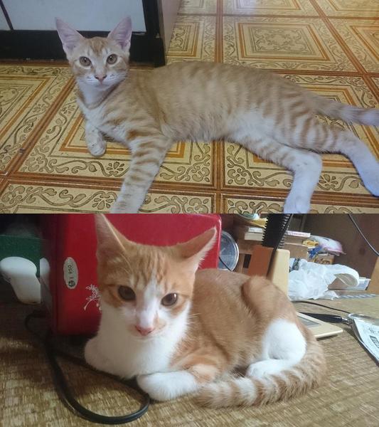 | 特徴(性格など) | 2匹とも人懐っこい猫です 茶トラ、白茶トラ共にオスになります 茶白はとても良く甘えてきます 茶トラはあまりベタベタしてきませんが抱いたり撫でたりするとゴロゴロと喜んでくれます 茶白は好奇心旺盛、茶トラはおっとりしています 兄弟仲は良好なのでペアで希望される方も大歓迎です こちらでも募集していますのでこちらとの組み合わせも可能です [5ヶ月くらいのグレーとキジトラ 静岡県] 今年は秋子がいます 11月過ぎくらいから里親を募集するつもりですので同時にはお渡しできませんがこちらとのペアも可能だと思います |