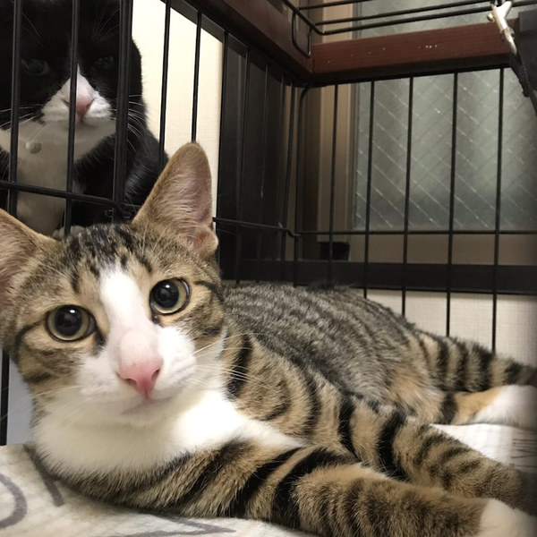 | 特徴(性格など) | ボクは、しんじろうです ボク達は、三キョウダイで保護してもらったんだよ。 今、ボクはね、弟のこうたろうくんと一緒に預かりさんちで保護生活を送っているんだ。 まだ、人にどうやって甘えていいのかにゃ?なかなか一歩が踏み出せずに固まっちゃうけど、ナデナデされたらゴロゴロ言っちゃうよ。 ボクは、引っ掻いたり、噛んだりしないから安心してね。 そんなボクを理解してくださる家族と出会いたいにゃ よろしくお願いします! --------------------------------------------------- キジ白美猫くん生後約5ヶ月の子猫くんのご紹介です。 お写真の通り、かなりの美猫くんです。 性格は、控えめで穏やかなおっとりタイプだと思いますが、まだ人にどうやって甘えていいか?がわからないようです。 ケージ生活に慣らしており、ケージの中が安心の場のようです。 ケージの中にいる分には、触るとゴロゴロと言います。 ですから迎えてくださる方は、ケージが必要となります。 貸し出しのレンタルもございますのでご相談ください。 どちらにせよ、しんじろうくんを迎えてくださる方は、ケージがずっとあると安心できると思いますので、ご用意の方をよろしくお願いします。 噛んだり引っ掻いたりなどの攻撃性はないのでご安心ください。 この子達は、TNRに入った時に三キョウダイで保護しました。 同じく一緒に保護生活を送っているこうたろうくんとは、大の仲良しです。 もし、可能であるならば、キョウダイとても仲良しなので、一緒に迎えてくださる事をオススメいたします。 去勢手術も終えているので、お仕事をお持ちのご家庭でも問題なく迎えていただけます。 まだ飼い主さんにべったり寄り添うまでは、あと一歩といった感じです。 そんな事を理解してくださる方に迎えていただきたいと思います。 おとなしい子達なので、飼いやすいと思います。 どうぞよろしくお願いします。 |