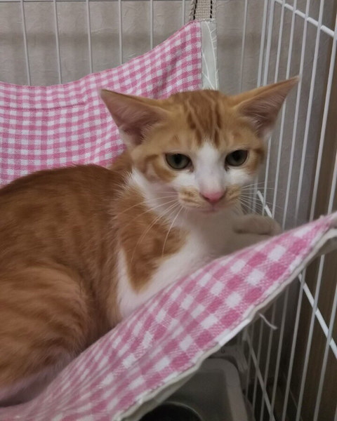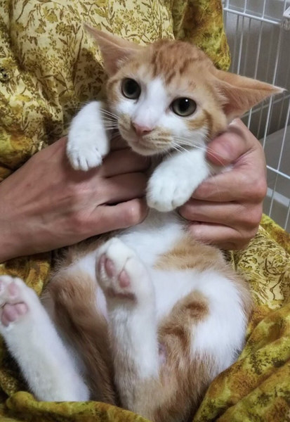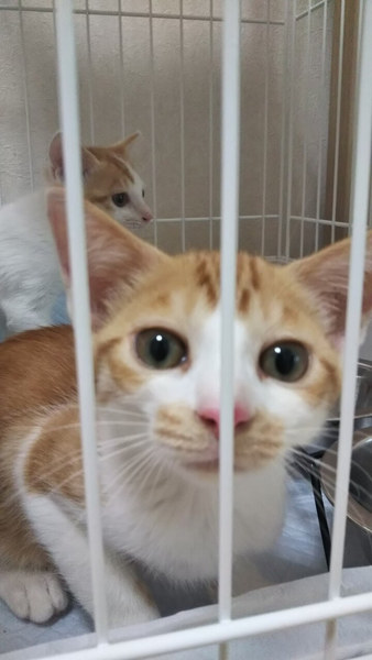 | 特徴(性格など) | アタチは、ひまりちゃんでしゅ 野良猫あがりだからまだシャーシャーしちゃうのよ だけど、抱っこもナデナデもだいしゅきだから直ぐに、ゴロゴロ言っちゃうの アタチ、甘えん坊にゃんだ 毎日ね、お姉にゃんと一緒に仲良く遊んでるよ〜! アタチが、いつもお姉にゃんの後をついて行く感じかにゃ? だから、アタチは、妹タイプにゃのかにゃ? 家族が出来たら、甘えたいにゃ〜 ジョートカイで待ってるにゃ ―――――――――――――――――――――――――――――― かわいいかわいい茶白の子猫ちゃんのご紹介です。 かわいい顔に似合わず、野良猫あがりなので、シャー!とか言ってしまいますが、ナデナデや抱っこされると直ぐに収まってしまいます(笑) ナデナデされるのが大好きなようで、直ぐにゴロゴロはじまります。 とても甘えん坊の子です。 同じく姉妹で一緒に保護されたつむぎちゃんと比べると、つむぎちゃんの方がグイグイと引っ張っていくお姉さんタイプで、 ひまりちゃんが後をついて回るような妹タイプです。 他の猫に対しては、まだ怖がりながらも近づいていく慎重派な一面も。 ひまりちゃんは、どちらかと言うと、猫より人に甘えたいタイプだと思います。 お留守も半日ぐらいならば問題ないので、パートタイムをお持ちのご家庭でも問題なく迎えていただけます。 もし、2匹飼いをご希望のようならば同じ姉妹のつむぎちゃんをオススメいたします。 とてもかわいい茶白の子猫ちゃんですので、どうぞよろしくお願いします。 |