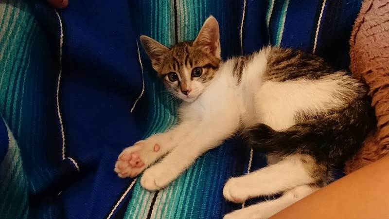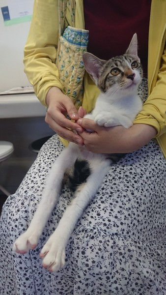 | 里親募集する理由 | 道路に1匹でポツンといるところを保護されました。 現在預かりボランティアのお家で元気に成長中です。 |