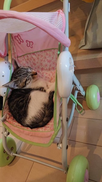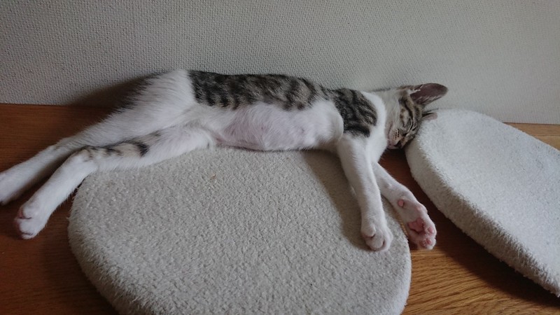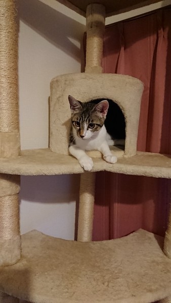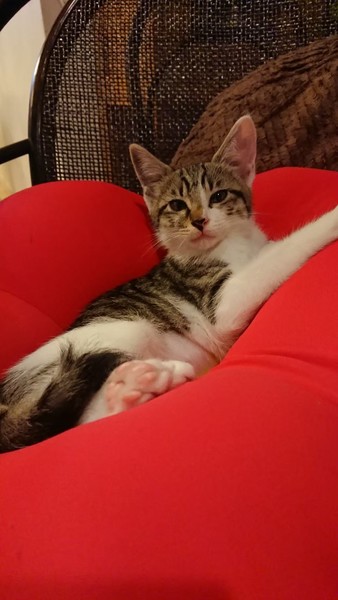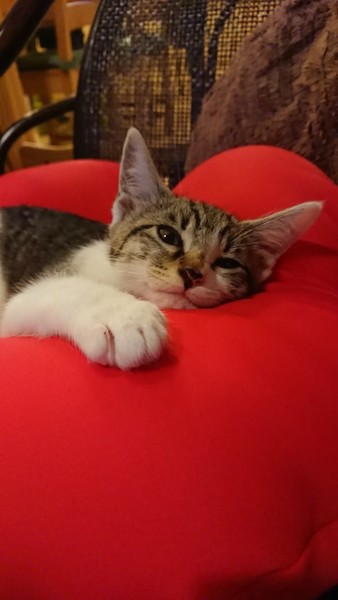 | 特徴(性格など) | 2019.5.16生まれ(推定) 毛色:キジ白 とてもお転婆な女の子。 大人猫を追いかけまわし、怒られるとコロンと転がり甘えた姿を見せますが、またすぐに飛びかかっていく元気娘。 眠くなったり甘えたくなると、ゴロゴロ喉をならしながら人の顔に自分の顔をスリスリ、揚句には人の鼻に自分の鼻を入れてくるという不思議な行動をする、ちょっと面白い つゆちゃんです。 |