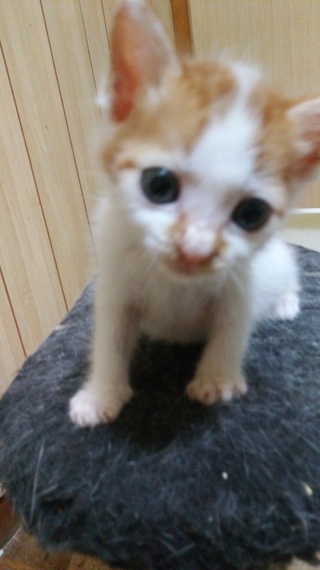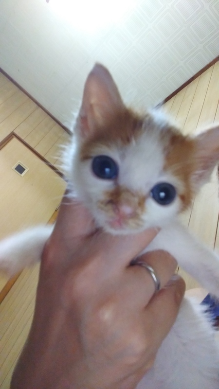 | 特徴(性格など) | 約生後1ヶ月です。 可愛く甘えたで、ヨチヨチ後をついてきます。 全体白に茶色のぶち模様があります。 |