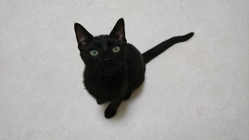 | 特徴(性格など) | 名前:チビクロ 毛色:黒 尻尾:長いです 性格:元気で食いしん坊で、遊び好きです。 一緒に遊べる月齢の先住猫がいればいいと思います。 かなりビビりなので、慣れるまで暖かく見守っていただける方でお願いします。 |