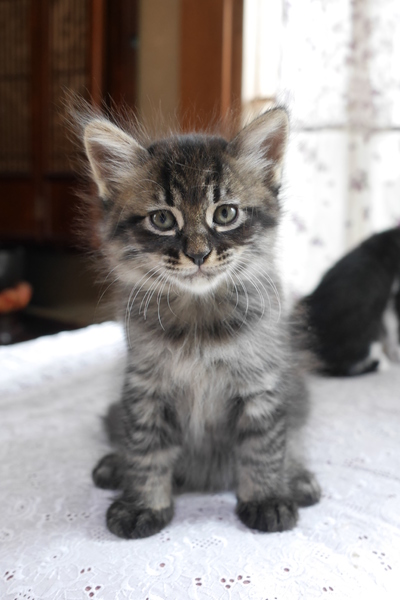 | 特徴(性格など) | 黒白 誕生日 8/6 キジトラ 8/10 キジトラの方が毛がフサフサしているので大きく見えます 首の周りが特にフサフサです トイレOK カリカリも食べ始めましたので飼いやすいと思います |