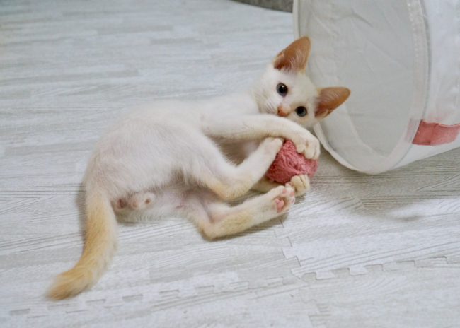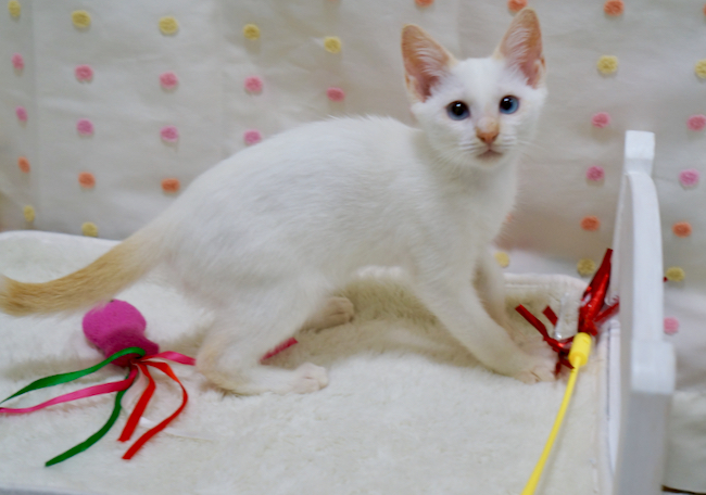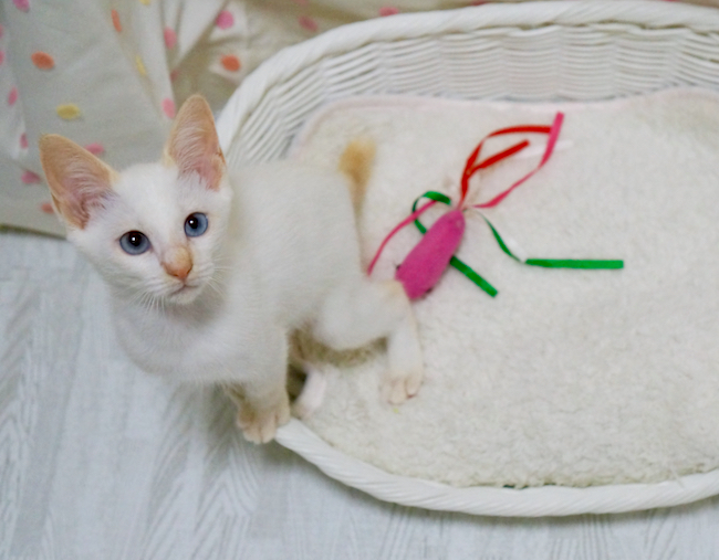 | 特徴(性格など) | 【レッドポイント♪レアカラーの超可愛い甘えんぼ男子☆仮名:スフレ】 ほわほわな毛質のホワイトに お耳と尻尾に入ったレッドのポインテッドカラー。 ポインテッドの中でも珍しい「レッドポイント」のスフレくんは 生後2か月ちょっとの 超可愛いおとこのこ☆ 透き通ったブルーのおめめに吸い込まれそうになります♡ 完璧な容姿の持ち主ですが 性格だって超抜群なんですよ^^ とにかく、ものすごーーーーーーく甘えんぼさん!! 人間を見ると「抱っこして!」の嵐! 抱っこすると「チュッチュ」の嵐!! とにかく、人にくっついて甘えるのが大好きで 人間のお膝に乗るのが大好きで 人の行くところどこにでもついていくストーカー子猫ちゃんなんです^^ ですので ♪猫さんを初めて飼う方 ♪猫さんとラブラブに過ごしたい方 ♪猫さんと一緒に猫じゃらしで遊びたい方 大歓迎!! 生後2か月と、まだまだ遊びたい盛りですので ♪先住猫さんがいらっしゃるおうち も、とーっても嬉しいです☆ ♪我が家で今、スフレくんと一緒にいる可愛いチャトラの女の子と 一緒にお迎えいただくことも超歓迎です! 人間が大好きな子ですので ♪お子様がいるご家庭 も大歓迎ですよ^^ ※生後2か月ですので、お留守番時間の短いご家庭からのご応募をお願い致します。 ※未就学児がいらっしゃるご家庭の場合、お母さまが猫に慣れた方でお願い致します。 ※猫だけでお留守番させる時間がある場合は、必ず猫用ケージまたは猫部屋をご用意ください。 スフレくんと一緒に暮らしたら 毎日がとってもHAPPYになること間違いなし! 可愛いくて甘えんぼなスフレくんに 生涯愛情を注いでくださる素敵なご家族ができますように! 疑問・質問はお気軽に~^^ トライアル中、正式譲渡後であっても 猫さんとの生活を丁寧にサポート&アドバイス致しますので その点もどうぞご安心くださいね。 ブログ「幸せの肉球」より、可愛いスフレくんの画像がいっぱいのご紹介ページ どうぞよろしくお願い致します! |