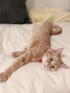 | 特徴(性格など) | 仮称を『ミモザ』といいます。 茶とらの女の仔です。 保健所収容猫です。 飼い主不在で猫たちだけが2ヶ月間もの期間を過ごしていました。 時々帰ってフードを置いてきたり、見兼ねた近所の方が窓から与えたりして、なんとか命が繋がっていました。 人見知り、猫見知りもしない、とても優しい女の子です。 なでなですると尻尾をピーンと立ててスリスリしてくれます。 名前を呼ぶとお返事をしてくれるお喋りが大好きなミモザです。 控えめな性格ですが、日々新しい発見ができてとても愛らしく、守ってあげたくなるような仔です。 保護された当初は水も食事も自分では摂れませんでしたが、今ではグルメな今時の女の子になりました。 ミモザの花言葉のような、優雅でエレガントな優しいミモザに愛情を注いでくださるパパママ、ぜひ一度逢いにいらして下さい。 【医療処置情報】これから実施のも含まれます *健康チェック *3種混合ワクチン接種 *ウイルス検査実施(FIV.FeLV共に陰性) *検便実施 *駆虫薬投与(レボリューション、ドロンタール) *マイクロチップ装着 *不妊・去勢手術 |