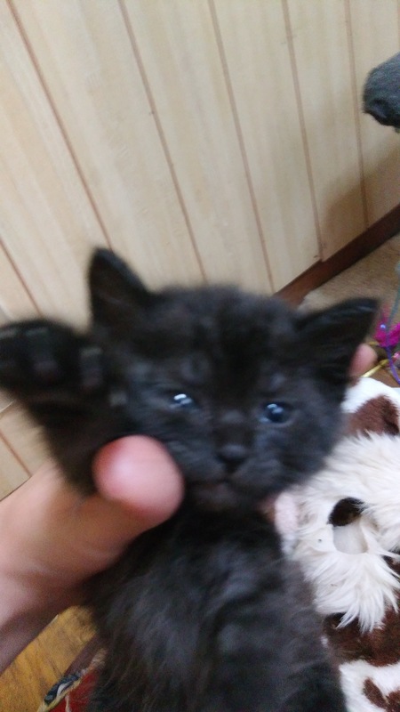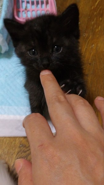 | 特徴(性格など) | 約生後1ヶ月です。 ゴロゴロ言って甘えてきます。 ふわふわな黒猫です。 足はうっすら虎模様も。 ノミ、ダニ駆除済み。 虫下ししてます。 ワクチン、エイズ、白血病検査小さいためまだ出来ません。 |