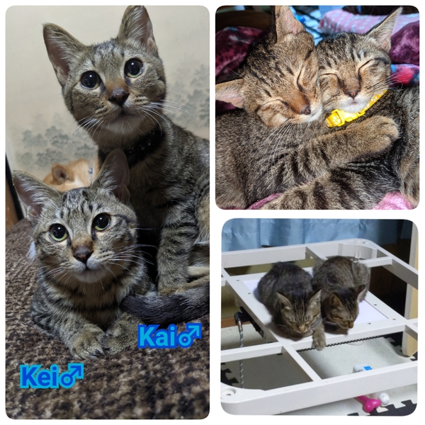 | 特徴(性格など) | かいくん→とても穏やかな子です。 優しくて甘えにきてくれます。 けいくん→やんちゃで人好きです。 年下の子とも遊んでくれます。 |
