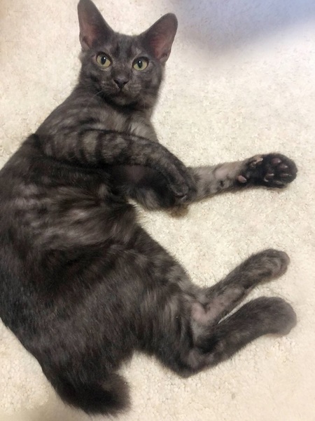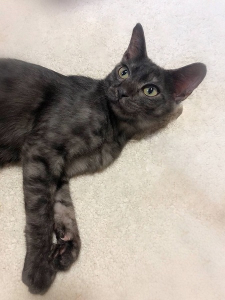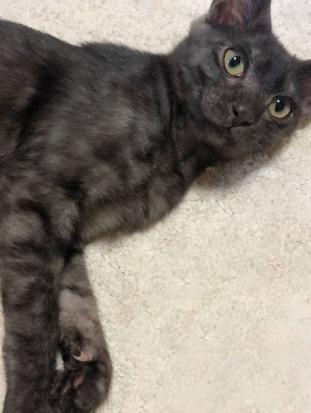 | 特徴(性格など) | 仮名、ぶんぶん 丸くてもっちり体形、濃いしましまスモークグレーの男の子。 慣れるまで数日必要ですが、心を開くとのんきな甘えん坊になります。 毛布にふみふみカーペットにふみふみが日課。 ソファーに座り「足があったかい??」と、見るとぴったりくっつき眠ってしまう可愛い子です。 |