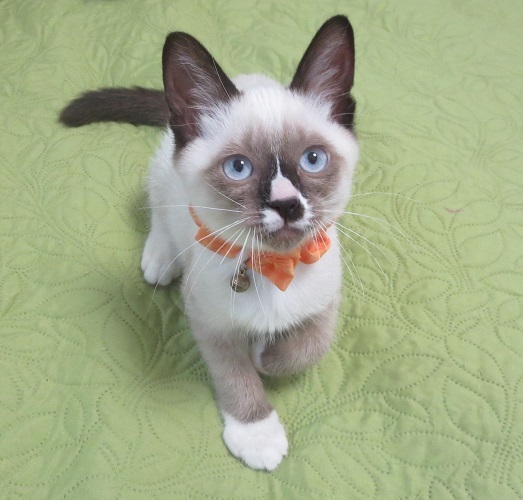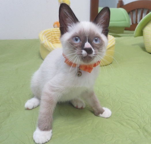 | 特徴(性格など) | 黒白のポポくん、黒ネコのナナちゃんと兄妹です。 鳥取県、大山の麓の町の出身で、飛行機に乗って兄妹3匹で東京にやって来ました。 田舎の子達だからでもないでしょうが、物怖じすることなく、無邪気で伸び伸びとした、本当に良い子達です。 自分達で遊んでいるかと思うと、人の様子を見に来たり、まとわりついてきたり~ 何とも大らかで可愛い、兄妹揃って性格絶品の子達です! ピピくんの顔の模様は、これこそ絶品です!(笑) |