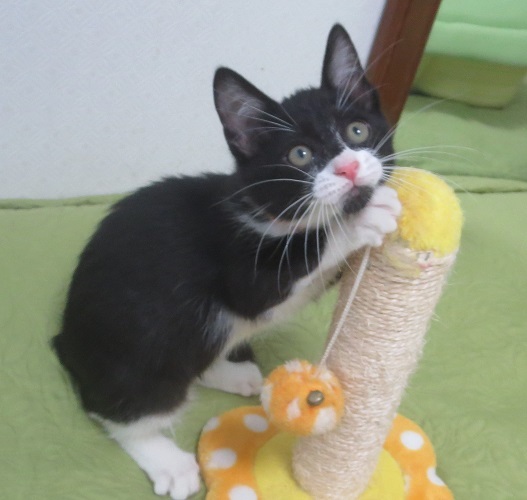 | 特徴(性格など) | シャム系ミックスのピピくん、黒ネコのナナちゃんと兄妹です。 鳥取県、大山の麓の町の出身で、飛行機に乗って兄妹3匹で東京にやって来ました。 田舎の子達だからでもないでしょうが、物怖じすることなく、無邪気で伸び伸びとした、本当に良い子達です。 自分達で遊んでいるかと思うと、人の様子を見に来たり、まとわりついてきたり~ 何とも大らかで可愛い、兄妹揃って性格絶品の子達です! ポポくんは、とりわけ無邪気な表情とあごひげ付きノラクロ顔のアンバランスが可愛いです。手足はソックス履いてます! |