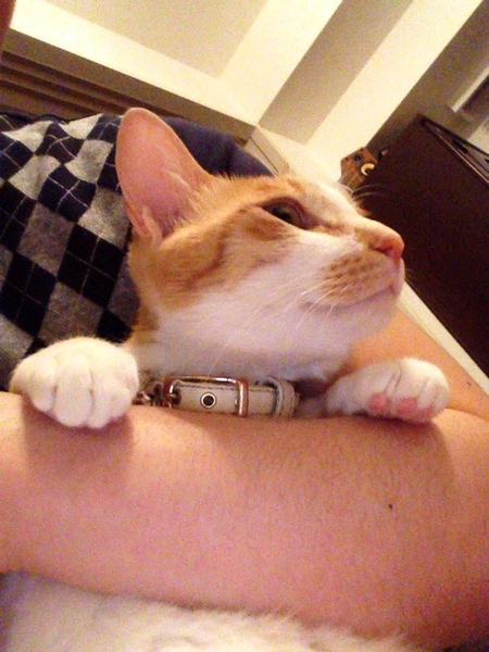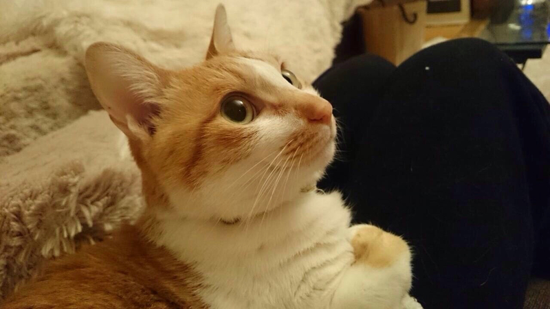 | 特徴(性格など) | 穏やかで人懐っこい性格で、来客にもすり寄って甘えます。噛んだり引っ掻いたりした事は一度もありません。 | ||