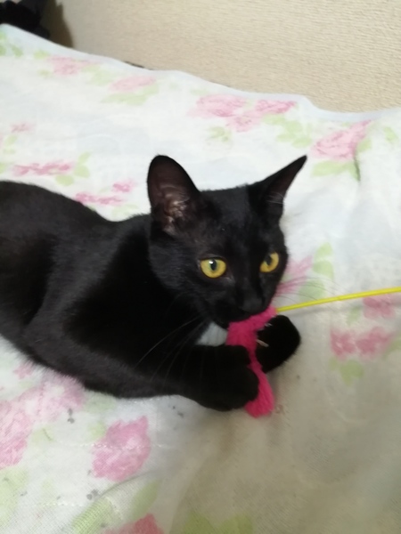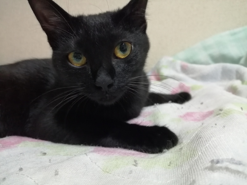 | 特徴(性格など) | 黒猫のベリーショートの女の子です。 名前は「こまち」です。 とても人懐こく、ゴロゴロと言いながら擦り寄ってきます。 人にもおもちゃにもカメラにも興味を示す好奇心旺盛な子です。 捕獲当時は怯えている様子でしたが、危害を与えるような人間では無いとわかると、すぐに擦り寄って来ました。 元々野良猫だとは思うのですが、野良猫にしては異常なほど人懐こいことや、トイレマナーが躾ける必要の無いほど完璧だった事から、以前人に飼われていた経験があるかもしれません。 |