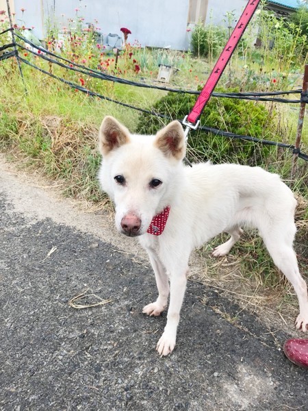 | 特徴(性格など) | 8キログラムの女の子です。とてもおとなしいくて、鳴くこともほとんどありません。少し怖がりなところがありますが、そばに行くと近寄ってきてくれます。 今はガリガリで、避妊手術も無理ですが、当方にきてからはしっかり食べて元気です。 飼いやすい、非常に性格のいい女の子です。初心者・高齢者の方でも大丈夫です。 穏やかで、他の犬にも優しいりょうこちゃんに会いにきてください。 |