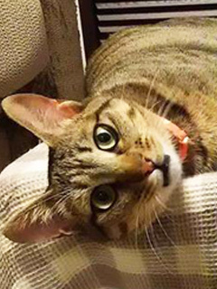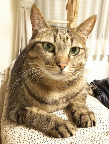 | 特徴(性格など) | 仮名を『ブーケ』といいます。 キジトラですが、明るい毛が少し多めです。 最初は人見知りがありますが、安心がわかると 自分から「ナデナデして~」とアピールしたりと、ツンデレさんです。 添い寝が日課で、お布団の中や枕の上で寝たり、顔の真横にベッタリする時もあります。 まん丸お目々がチャームポイントで、お腹周りや全体のフォルムが愛らしいです。 ご飯の時は、お皿の音がすると定位置で待機したり、定時が過ぎるとひたすら待って(見つめて)催促します。 食べることが大好きで、お皿が空っぽになっていると、お皿の前から動こうとしません。 現在、他の3頭の猫と暮らしていますが、程よく距離を保ちながら共生できていますので、フレンドリーな先住猫さんの居るお家でしたら大丈夫だと思います。 センター収容時は、とても衰弱しており、今のブーケの姿が想像もできませんでした。 医療とボランティアさん、預かりお母さんの愛情で、本当に見違えるほどのピカピカな猫さんになることができました。 ブーケを愛育してくださる方とのご縁を探しています。 ◉お見合い場所は、川越市の預かりさん宅になります。 【これまで行った医療処置】これから実施のも含まれます *健康チェック済み *3種混合ワクチン接種済み *ウイルス検査実施済み(FIV.FeLV共に陰性) *不妊手術済み *検便実施済み *駆虫薬投与済み(レボリューション、ドロンタール) *マイクロチップ装着済み |