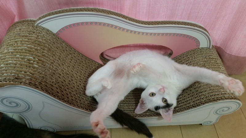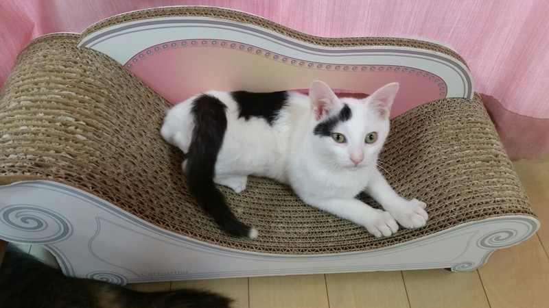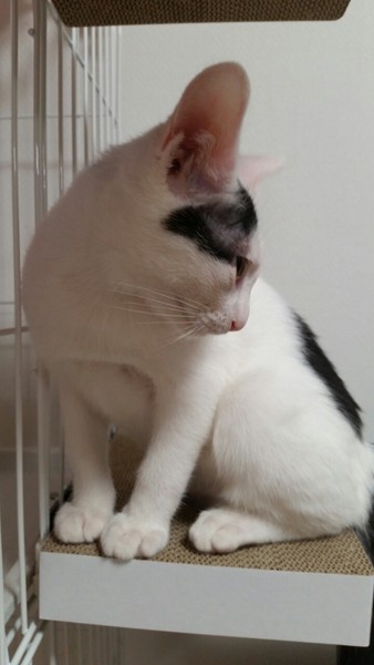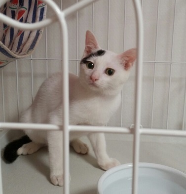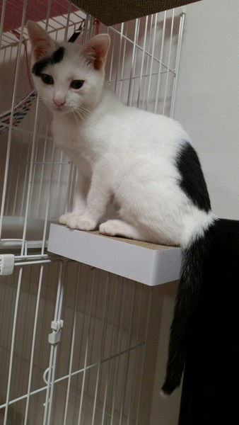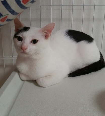 | 特徴(性格など) | 2019.5.19(推定) 毛色:白黒 優しい顔をした癒し系男子。 チャームポイントは黒い尻尾の先が白いところ! スリスリ、ゴロゴロ、抱っこも大好きです。 顎の下を撫でられるとうっとりそのまま寝てしまいます。 ケージ慣れ、大人の猫慣れ、仔猫慣れ、人間慣れもバッチリです。 穏やかで一緒にいると癒されること間違いないです。 とてもかわいい子なので是非会いに来てください!! |