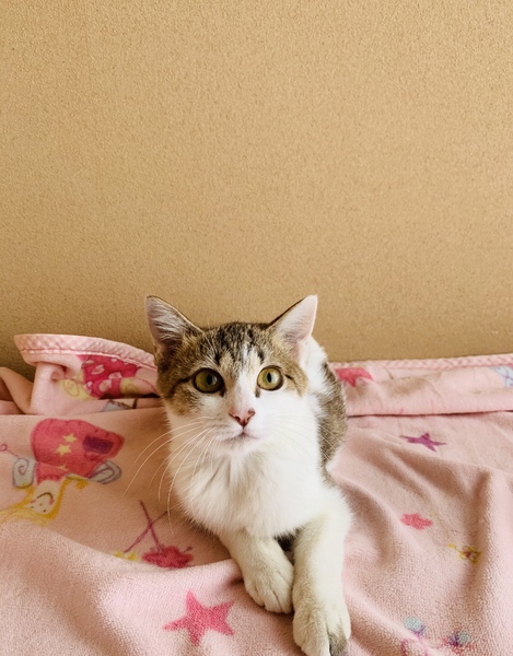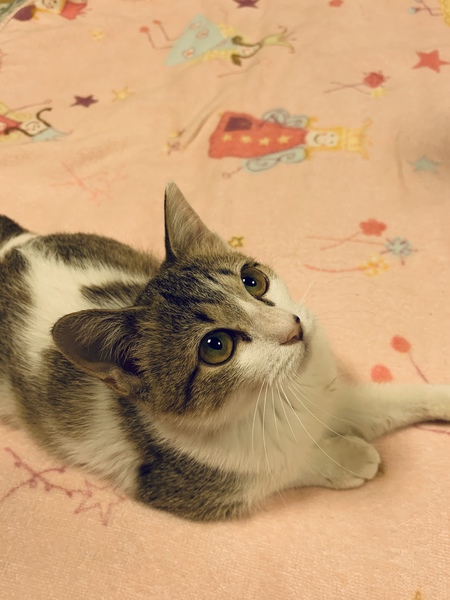 | 特徴(性格など) | 最初は人見知りしますが、慣れてきたら触ってあげると嬉しそうにして、撫でられるのが大好きです。 一緒に寝ていると、いつの間にかゴロゴロ言いながらすり寄ってきて、その奥ゆかしい甘え方がとても可愛いです。 手のかからない子で、留守番もちゃんとできます。 |