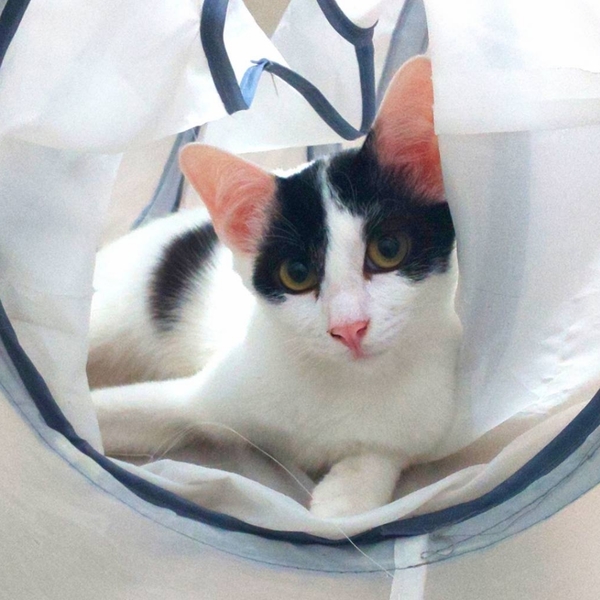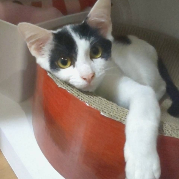 | 特徴(性格など) | 人懐っこい甘えん坊さんです。 撫でて!と寄って来て、膝に乗ったり、お腹に乗ったりしてきます。 「ナアナア」とハスキーボイスでおしゃべりします。 尻尾は長め、先端に少し角度がありますが、見た目は真っ直ぐです。 あごの下にヤギヒゲが生えていて個性的な子です。 兄妹ではありませんが、同居している咲ちゃんとエネゴリ君と仲良く遊んでいます。 ※歯並びについて 上顎に比べ、下顎が短い不正咬合(オーバーバイト)です。 永久歯に生え変わる時に、歯並びが悪くなり、歯を削る処置が必要になるかもしれません。 その場合、ごはんをこぼしやすくなったり、口内炎が出来やすくなったりする可能性があります。 |