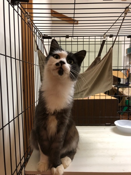 | 特徴(性格など) | 柄はシロクロで登録していますが、よく見ると茶色も混ざっています。 上半身は黒が濃くて短毛、下半身は茶色が多い感じで半長毛、しっぽは長毛です。 今後栄養がいきわたれば、ふさふさの長毛か半長毛になると思います。 手足がとても大きいので、大型になると思います。 |