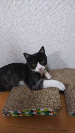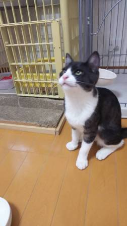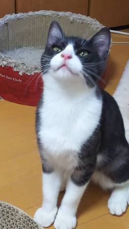 | 特徴(性格など) | 名前:トッポ 黒ではなくダークグレーのきれいなハチワレの男の子 人が大好きで、そばに行くだけでゴロゴロとのどを鳴らします。 兄弟猫ベルと仲良しです |