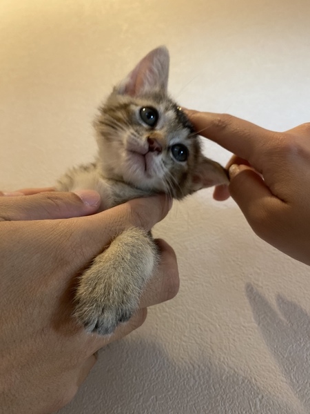 | 里親募集する理由 | 実家の軒先に生まれていた子猫ですが、生後2週間で親猫が交通事故で死んでしまったので見かねて保護しました。我が家では他にも猫を飼っていてこれ以上頭数を増やせないので里親を募集しています。 | ||