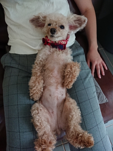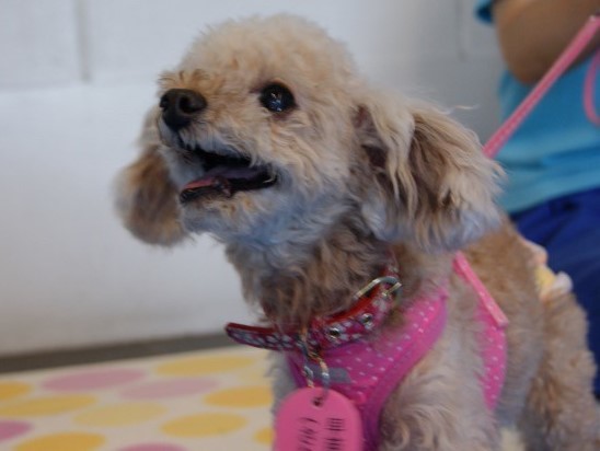 | 特徴(性格など) | トイプードルの女のコ。毛色はアプリコット、体重は2.45kg、年齢は推定10才です。仮の名前を「早苗」ちゃんと名付けました。 飼育放棄された寂しさからなのか、保護当初は人の側にいたくて必死でした。でも、今は頑張ってお留守番も出来るようになり落ち着いています。 人が大好きでとても甘えん坊です。運動能力も高いです。 トイレシートをきちんと認識し、ご飯もおやつも大好きです。お膝が彼女の指定席。 少し気が強い所もありますが、皆に甘える早苗ちゃんは癒しそのものです。 動きが俊敏なので、ドアの開閉にだけはご注意下さい。 フィラリアは陰性、他に健康上の問題はありません。 現在は、一時預かりボランティアさまのもとで新しい家族を待っています。 現在の様子はコチラ → http://smileagain312.blog.fc2.com/ |