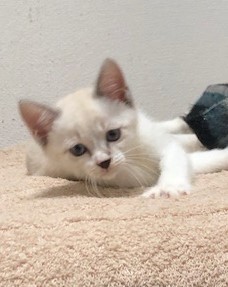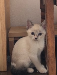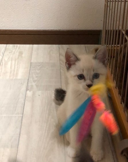 | 特徴(性格など) | ①シャム・ラグドール系の綺麗な色柄、目はブルーアイです。 はじめは人は怖がって逃げたりしていましたが、段々触らせてくれるようになりこの頃は自分から近づいてきて、触るとゴロゴロ喉を鳴らすようになりました。もう随分人慣れが進み、随分安心の域に達してきたかなと思えるようになりました。怖がりさんですが慣れるまでは少し時間がかかりましたが、慣れてくれば性格も穏やかで優しい面もあり、おっとりしていて可愛いです。この子のスピードに合わせ、大切に可愛がっていただけたら、この子も心を許していく子かなと思います。優しく接して遊んだり可愛がったりしてくださる方を希望します。黒猫ちゃんと比べるとおっとりさんで、遊ぶときも一歩遅れておもちゃを追う感じで、なかなか先におもちゃを手にできません。そこがまた可愛いところでもあります。 ②黒猫ちゃん。目がグレーっぽい色に見えます。とても可愛いお顔と姿です。お腹のところにツキノワグマのような白い柄が一つ入っていて特徴的で可愛いです。怖がる事もなく、元気いっぱい走り回って遊んで、自分から膝に乗ってきたりしてとても人懐っこくて可愛い子です。甘えん坊で遊ぶのも大好きで活発です。運動神経抜群で性格は優しい子です。遊ぶときは元気いっぱい、動きが俊敏で男の子のように元気に遊びます。 |