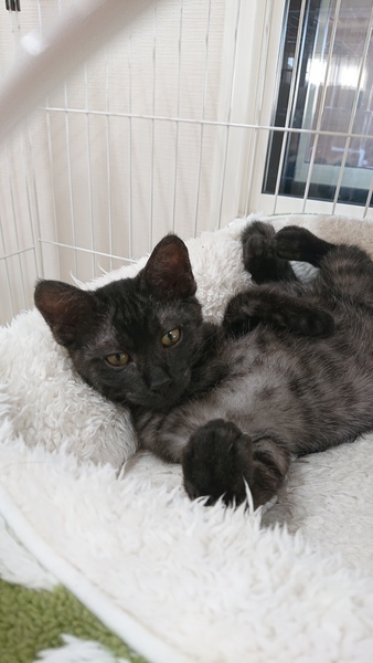| 特徴(性格など) | ★仮名:すーも ★性別:オス ★年齢:生後6ヶ月 ★種類:MIX 毛色はスモーク ★ワクチン接種:済み ★体重:3kg ★猫エイズ猫白血病:陰性 ★去勢:済 ★性格その他:子猫らしい元気一杯な男の子、反面寂しがり屋なところもあります。 |