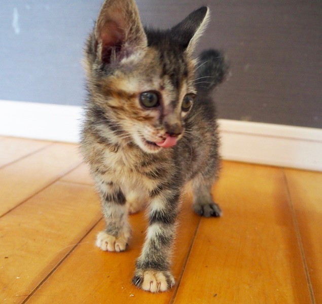 | 特徴(性格など) | 人の傍が大好きな「うなぎ」ちゃん♡ お膝の上が大好き♡ 他の猫ちゃんもワンちゃんも仲良く過ごせる、陽気なサビお嬢ちゃま♪ 現在、ドライフードを置き餌として、栄養補給のため、一日2回程度のパウチを与えています。 <推定誕生日:8月始め> |