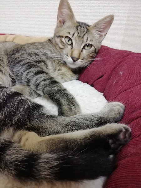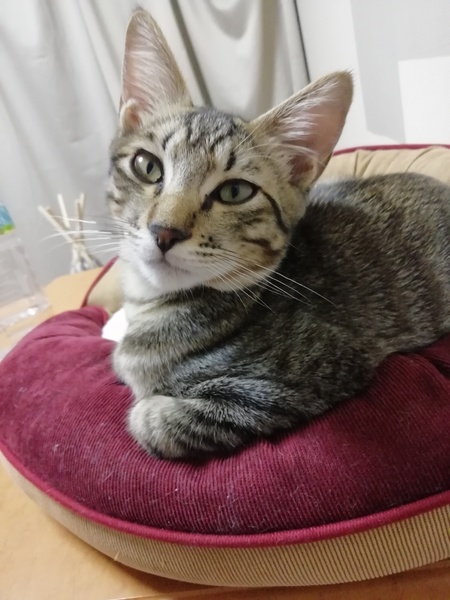 | 特徴(性格など) | キジトラ?の男の子です 元気いっぱいでやんちゃ盛りです! 精悍な顔立ちで甘えたな所があります |